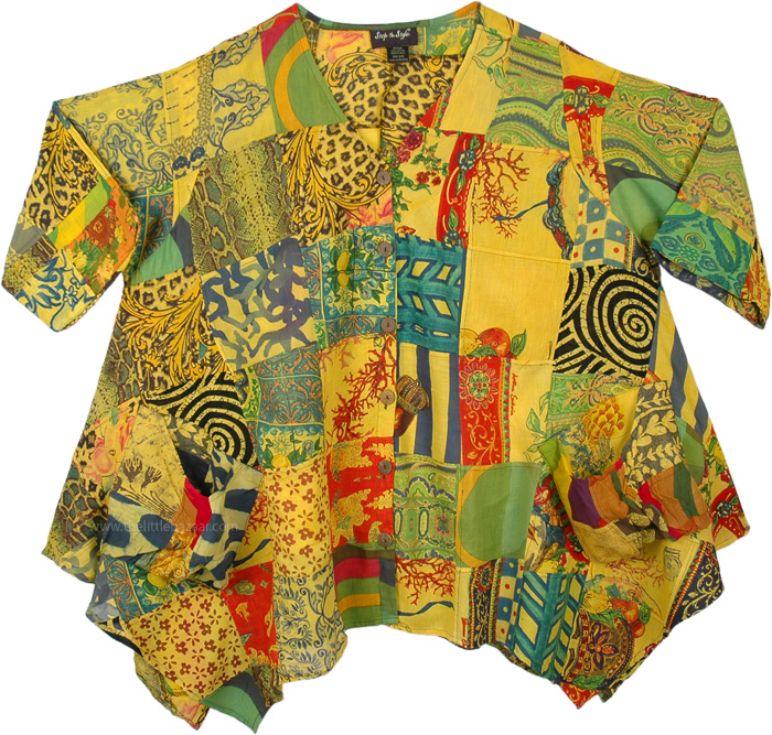 Tunic tops are more popular than ever, easy and exotic, this distinctive sheer georgette tunic makes a lasting impression. This jet black hand embroidered tunic is all about elegant construction, flattering fit and a beautiful way to wear a current trend. The embroidery has tiny white sequins sown into it. The hem, the side slits and the three-quarter length sleeve trims have a slight silver tinsel highlight. The mandarin collar opens to a split-front neckline. Sheer material and these tunics are meant to be worn as a loose fit. Georgette is an excellent choice for free flowing tunics. The thing that makes georgette fabric distinctive is the crinkly crepe-light texture, which feels slightly rough and dull, but gives the fabric a bouncy, flowing look. The threads used in georgette fabric are highly twisted, which causes them to crinkle as they relax. The weave of georgette tends to be rather tight, but the overall appearance is slightly sheer, since the threads are very thin.