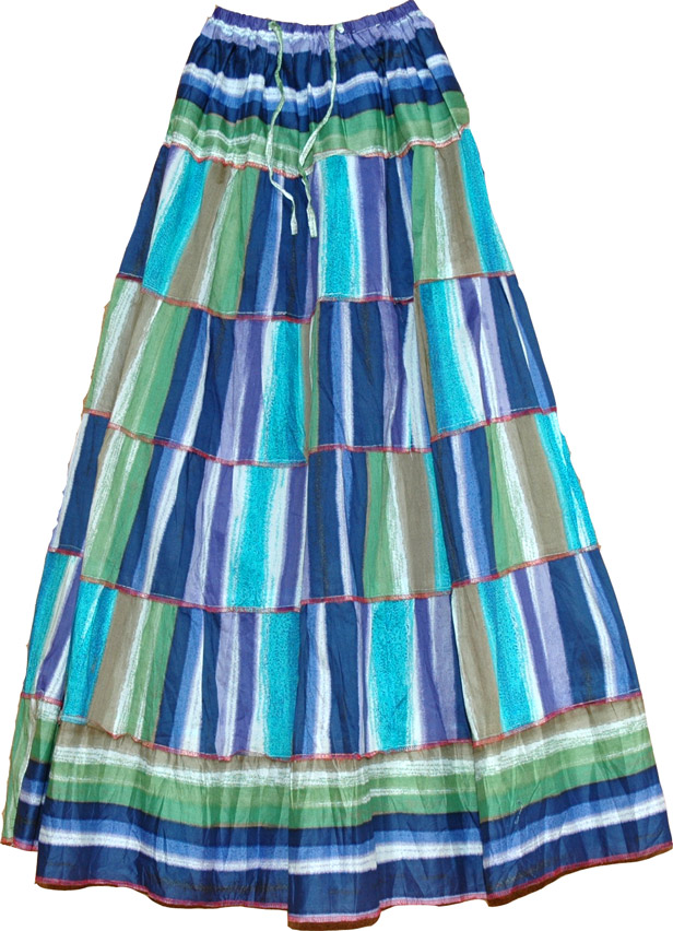 The vibrant oceanside colors come alive on this pure cotton summer skirt. It is extremely light and flowy, it has a very wide hemline. - Length:38"