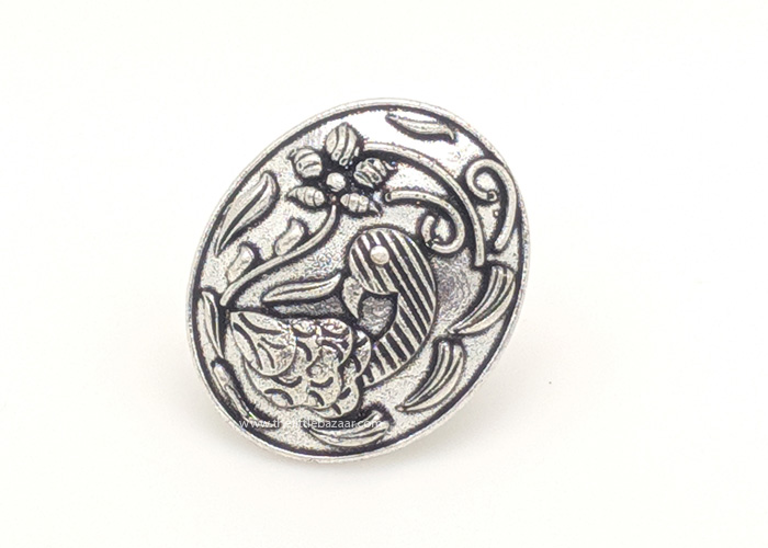 Oxidized Silver Duck Embossed Boho Finger Ring