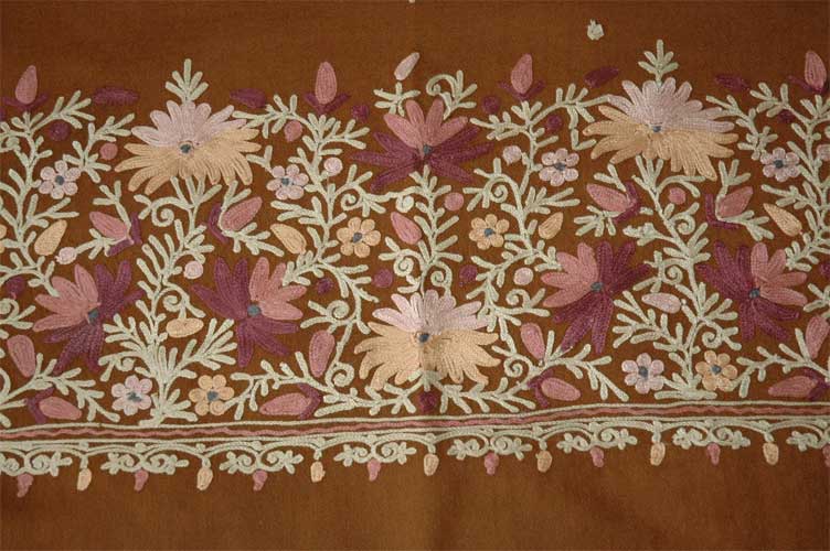For centuries now people from many cultures have enjoyed the intimacy, mesmerizing beauty and elegant drape of a shawl and stole. We offer a distinctive and sophisticated collection of exquisitely sequined evening wraps, embroidered stoles and uniquely woven paisley stoles. These are designer items with a sophisticated flair tastefully fashioned in exceptional colors. Uniquely charming and elegant fine viscose rayon Paisley Shawls/Stoles and Flower Motif Shawls/Shawls for any occasion, from day to evening. Wrap yourself in the luxury of these exquisite masterpieces in a diversity of heritage designs.Trendy and Stylish Shawl/Stole Wrap in MustardThis is a very delicate and exquisite Shawl/Stole which can also be used as a Scarf. The base color is mustard and it has rose, light and dark pink and light orange embroidery in flower and leaf pattern (see picture). It has fringes on the shorter edges. The fabric on this stole is extremely soft and smooth to touch and drapes very well. This particular stole is perfect casual or even business wear with slacks or skirts or when a simple dress. Or use it as a scarf with jeans on a cold day.- Size: Length: 77"