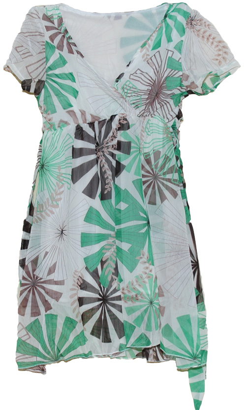 A light confection of a chiffon short skirt, and top, this breezy and flirtatious dress is just right for summer.