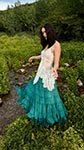 This tiered maxi skirt features a fit-and-flare silhouette that sits fitted at the waist and hips before flowing into multiple gathered tiers toward the hem. Made from lightweight cotton or a cotton blend fabric, it offers comfortable movement thanks to its elastic waistband. The vibrant turquoise color creates a striking bohemian statement piece. Multiple horizontal tiers are constructed with gathered ruffles and raw, frayed edges, adding textural interest and movement. The full-length design reaches to the ankles, allowing for maximum flow and sway. Note: This skirt runs in junior sizing and fits small - order one size up from your usual adult size. Perfect for music gatherings, beach days, or casual summer outings when paired with fitted tanks, crop tops, or flowing blouses.