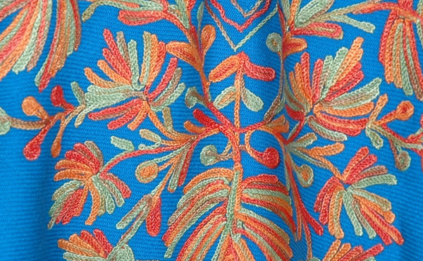 Beautiful blue poncho made of wool, with floral design and fringes. It displays a very feminine design with beautiful embroidery in the neck that adds a special touch to it. This a versatile garment, comfortable and perfect for cold winter seasons. This winter season this may be your key to look attractive. Ponchos serve well to keep you warm, yet serving as something open to keep you flexible. This poncho looks great with pants, or skirt or even jeans, dress - practically with anything. Wear it over the neck and tie if needed. Back of the neck is plain.