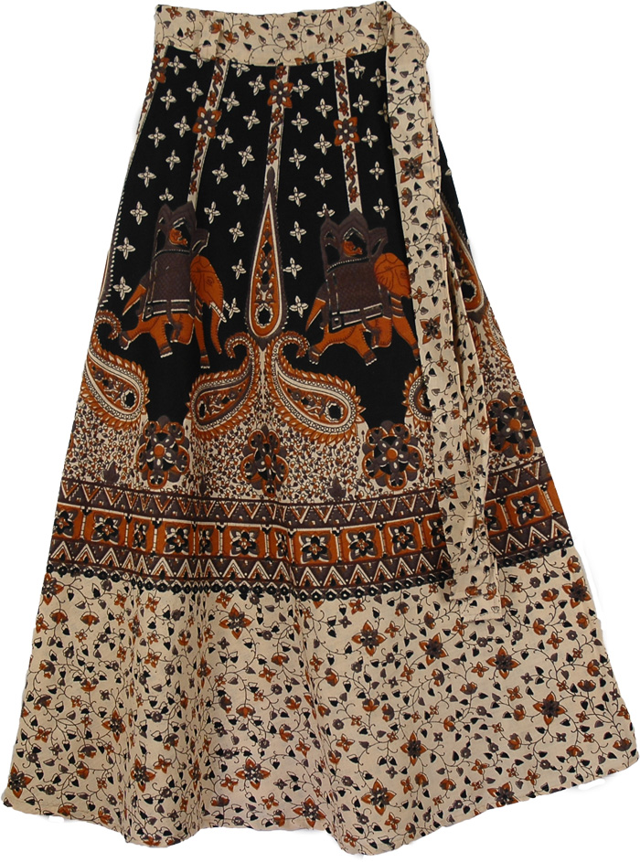 Bohemian Block Print Wrap Around Skirt in Rodeo Dust