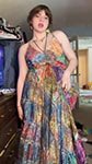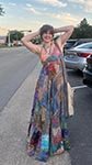 This effortlessly chic long long dress captivates with its vibrant colors of the patchwork in different prints. The flowy empire silhouette flatters all it's length, with a short smocked band on the back giving a top fit. The shoulder straps are adjustable and a waist belt tie adds a feminine fit and finish. It gradually flares towards the bottom hem. The recycled fabric pieces are thoughtfully upcycled from the excess and leftovers of the garment industry, avoiding unnecessary waste and eco-damage. By giving the fabrics new life, we`ve created a sustainably-produced pair of pants you can feel good about wearing. Made of a soft poly silk blend - 70% Poly, 30% Silk. Make a bold, eco-friendly statement with this one-of-a-kind printed skirt.