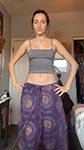 Elastic waist will fit size an S to L, with large front side pockets with a buttoned flap; elastic at ankles; 2 side pockets
