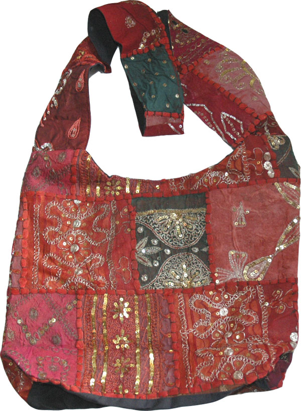 More details There is similar patchwork and embroidery on the front and back and also on the strap. It closes with zipper on the top. Inner lining on the entire purse is black cotton.