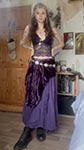 Tiered Handkerchief Country-Style Skirt in light purple. An elegant, rural style skirt that is bound to make you feel a connection to the medieval past. The eyelet fabric bridges the gap from renaissance to modern on this beautiful unique slightly stonewashed masterpiece skirt with a handkerchief hem. Each of this skirt's layers become fuller with each tier, and every tier has an individual embroidered floral design with a ruffled handkerchief hemline. Fun and easy to wear thanks to its stretchy elastic waist and drawstring. You can wear this skirt with a simple, light blouse in the summer, leggings and boots in the fall, and add a warm sweater to your fall assemble in the winter. Perfect to show that you've got a unique sense of style, you'll be able to create dozens of unique outfits throughout the year with this neo-renaissance lace-up skirt.