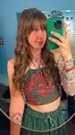 This crop top boasts a mesmerizing red and yellow amber tie-dye swirl pattern in a brown base shade that exudes sophistication and style. The halter neck design features a strap that ties behind the neck, providing a secure and comfortable fit, while the cropped hemline adds a touch of trendy elegance. Tie the sides on the back for a cool knot look, making it flexible for various body types and sizes. This versatile top can be paired with high-waisted jeans or shorts for a casual daytime look or dressed up with a skirt or pants for a night out on the town. The stunning brown color will complement a wide range of skin tones, making this top a must-have for any hippie or boho fashion wardrobe.