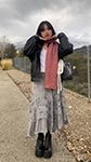 This bohemian rayon midi skirt features a lovely lavender color throughout. The flowing design includes a gathered elasticized waistband with an adjustable drawstring for a comfortable fit. Constructed with multiple decorative tiers, each adorned with delicate embroidered accents and trim. The upper portion displays a charming pattern of pink flowers and colorful butterflies on a soft purple background. The bottom tier is crafted from textured jacquard fabric, adding elegant detail and structure to the hemline. The soft and luxurious rayon fabric offers graceful movement and drape. Perfect for pairing with a simple tank top or blouse for summer festivals, beach outings, or casual gatherings.