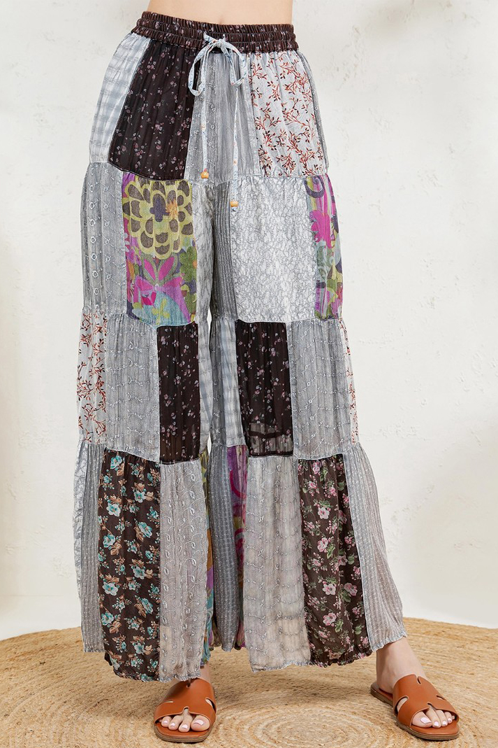 Boutique Vibe Patchwork Vintage Revival Wide Legs Flowy Pants