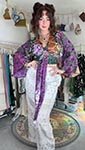 These free-size cotton lurex pants feature a smocked elastic waist and two functional pockets for added convenience. The soft cotton fabric is enhanced with silver lurex vertical accents and intricate, golden, hand-stamped patterns, offering a lightweight yet stylish design. The hemline is adorned with shimmering silver lace, adding a touch of sparkle and detail to the overall look. The wide-leg fit offers comfort and ease of movement, making these pants versatile for both casual outings and festive occasions. Pair with a simple top and sandals for a relaxed daytime look, or dress it up with accessories for an evening gathering.
