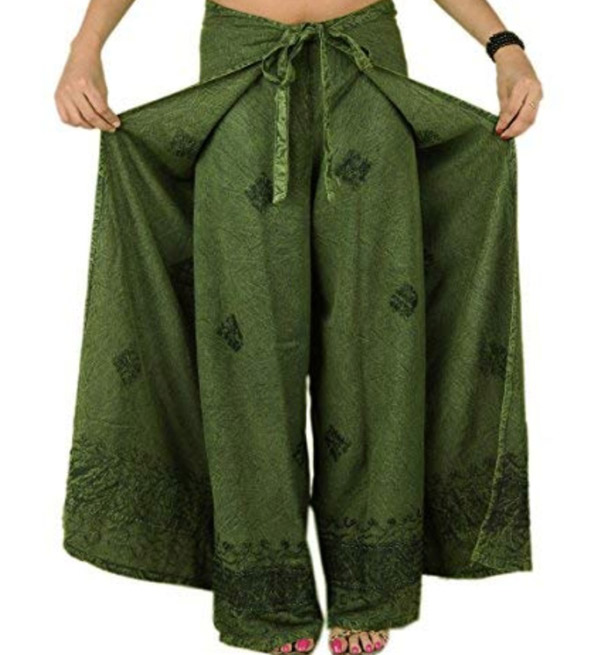 Embroidered Wrap Trousers Boho Wide Leg Palazzo