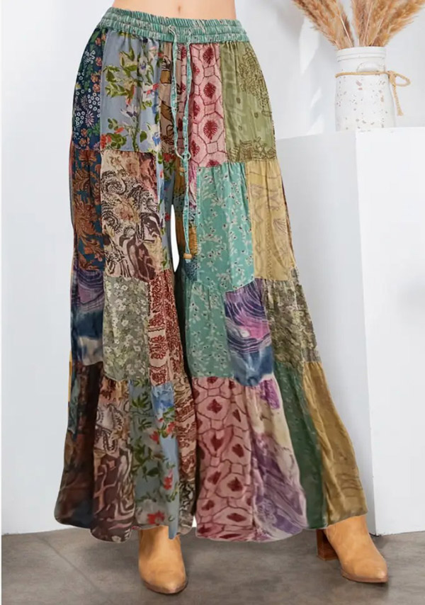 Boutique Vibe Patchwork Revival Wide Legs Flowy Pants
