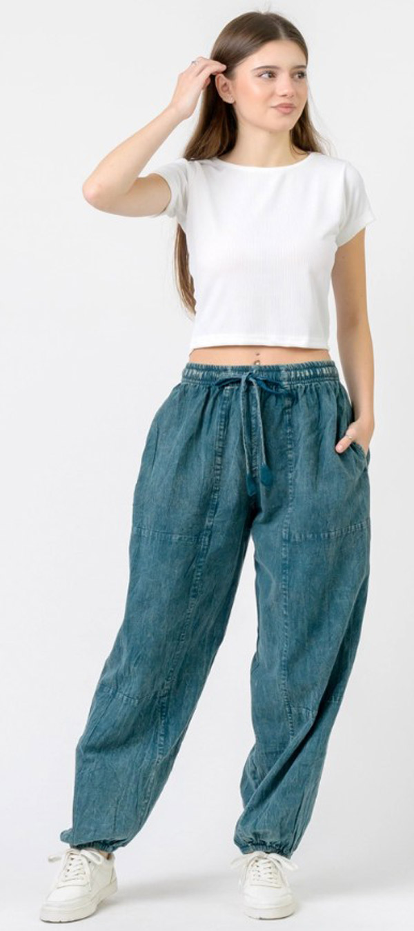 Soft cotton balloon-leg pants in acid-washed with drawstring waist and elasticated ankle cuffs