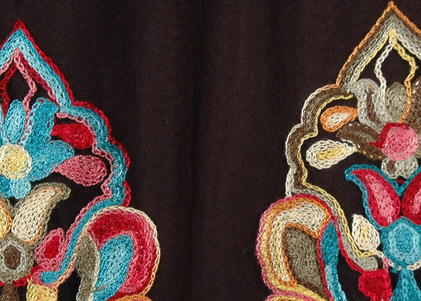 Circular Skirt with Fuschia, Turquoise and Beige Embroidery in Black and Pink Polyester