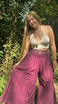 A pair of palazzo pants in ivory off-white that you can wear in every season; these pants are incredibly comfortable and are made of lightweight cotton fabric. The bottom of the pants is wide, which gives it a flow and a feminine look as you walk. These pants have pin-tuck details at the bottom near the hemline. Perfect for summer evenings with friends, you can wear these casual wide-leg pants with a solid top of any color you like, according to the occasion. Wear some jewelry to enhance your bohemian look. These pants are lined on the hips to mid-thigh.; Material: 100% Cotton