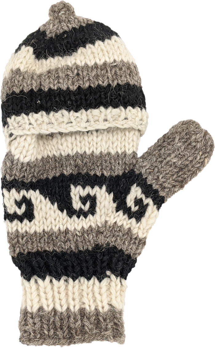 Hand knitted wool finger gloves convertible mittens from the foothill of the Himalayas