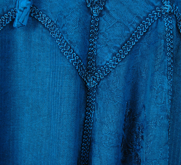 Stonewashed tipsy teal around knee-length (depends on how tall you are) rayon skirt for a perfect summer to spend your day in the coolness of this hue and relax with the comfortable soft texture of the fabric. A modern take on the rodeo chic style in urban colors; all our festival skirts will make you proud. The self-design, the machine embroidery and the lacework on the panels make it an exclusive skirt. Elastic and drawstrings are attached at the waist for perfect fit and ease.