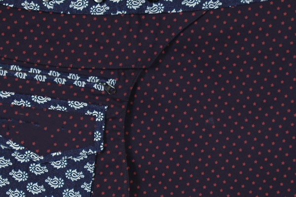 Burgundy polka-dot base with navy floral band featuring white botanical and leaf motifs