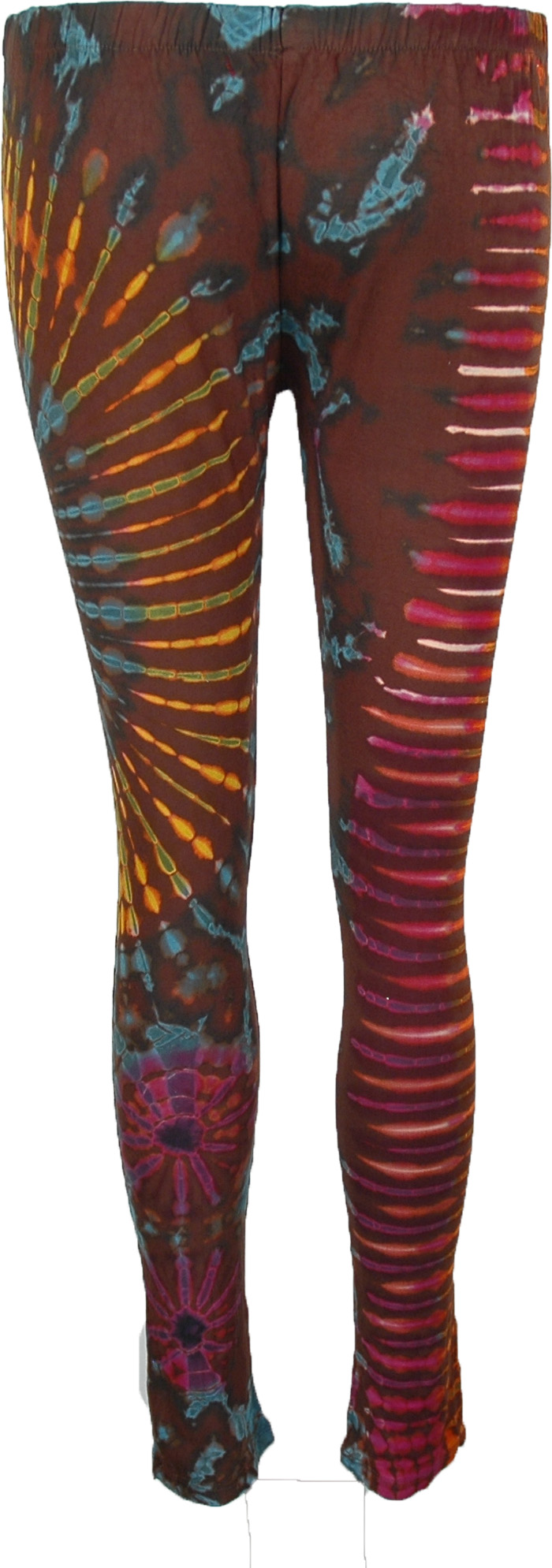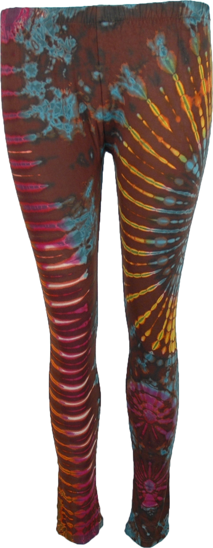 Bright tie dye leggings in stretchy spandex rayon mix