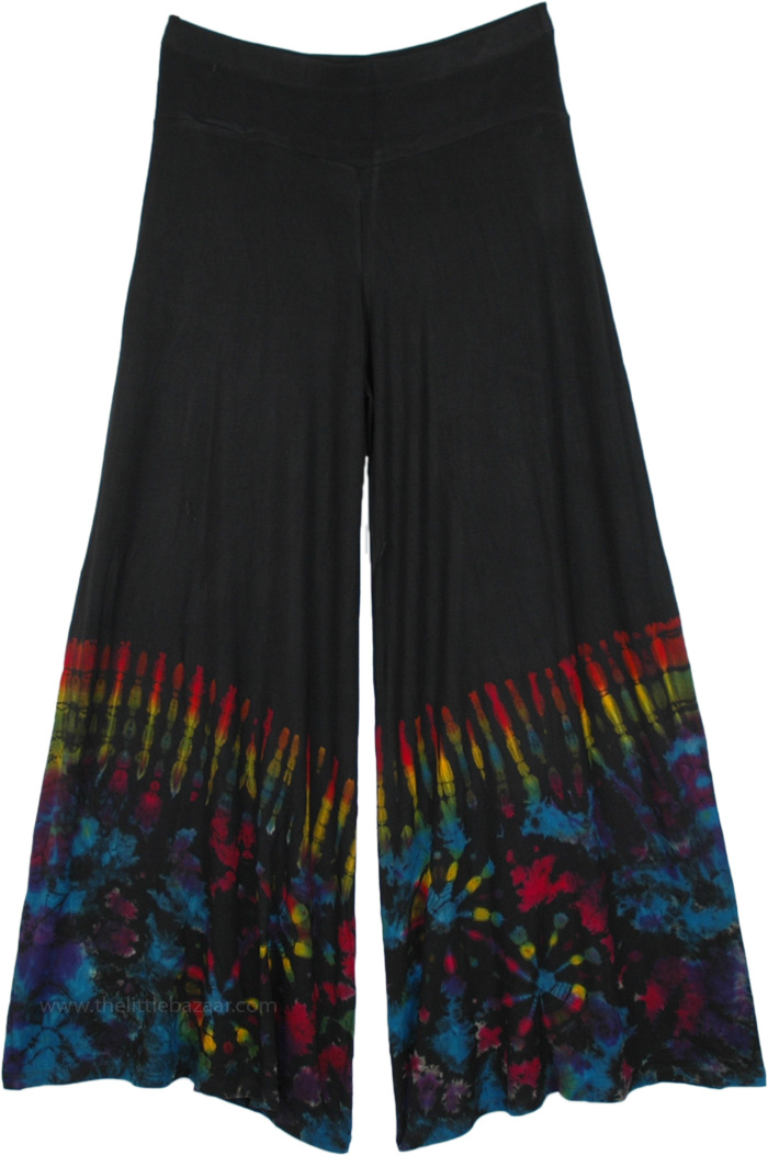 Rainbow Tie Dye Carnival Palazzo Pants in Black