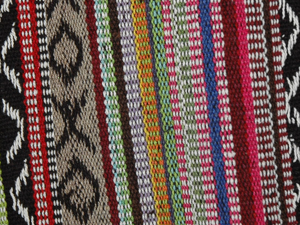 Multicolored striped fabric all around with a stand up mandarin collar and wood buttons