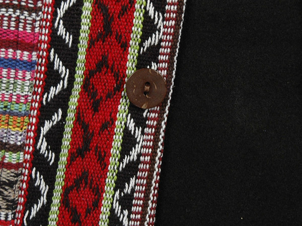 A Himalayan handmade loom woven fabric is used to beautifully craft out a sleeveless multicolored vest with a black fleece lining. This style of vest with its stand-up mandarin collar, a long row of buttons, two pockets in the front and hip-long length was popularized by the Beatles in the 1960's. It is coming back with season with an environmentally friendly twist from the small scale cottage industry in the foothills of the Himalayas. The soft inner fleece lining in the new generation twist and it will keep you warm, cozy and very trendy with winter season. This unisex handcrafted vets is multicolored and each piece is woven individually. It will make an ideal gift for the holidays!