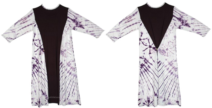 Flaunt an elegant ensemble with this loose-fitting, flowy silhouette midi dress cut from soft fabric and tie-dyed for cheerful appeal, offering a stretchy and comfortable fit. It features a celestial calm white and purple tie-dye pattern contrasted with a solid black back panel that can be adjusted with buttons, allowing an optional open-back style, as shown. The dress pairs well with boots or sandals for a casual day out, or layer it with a jacket for an evening vibe.