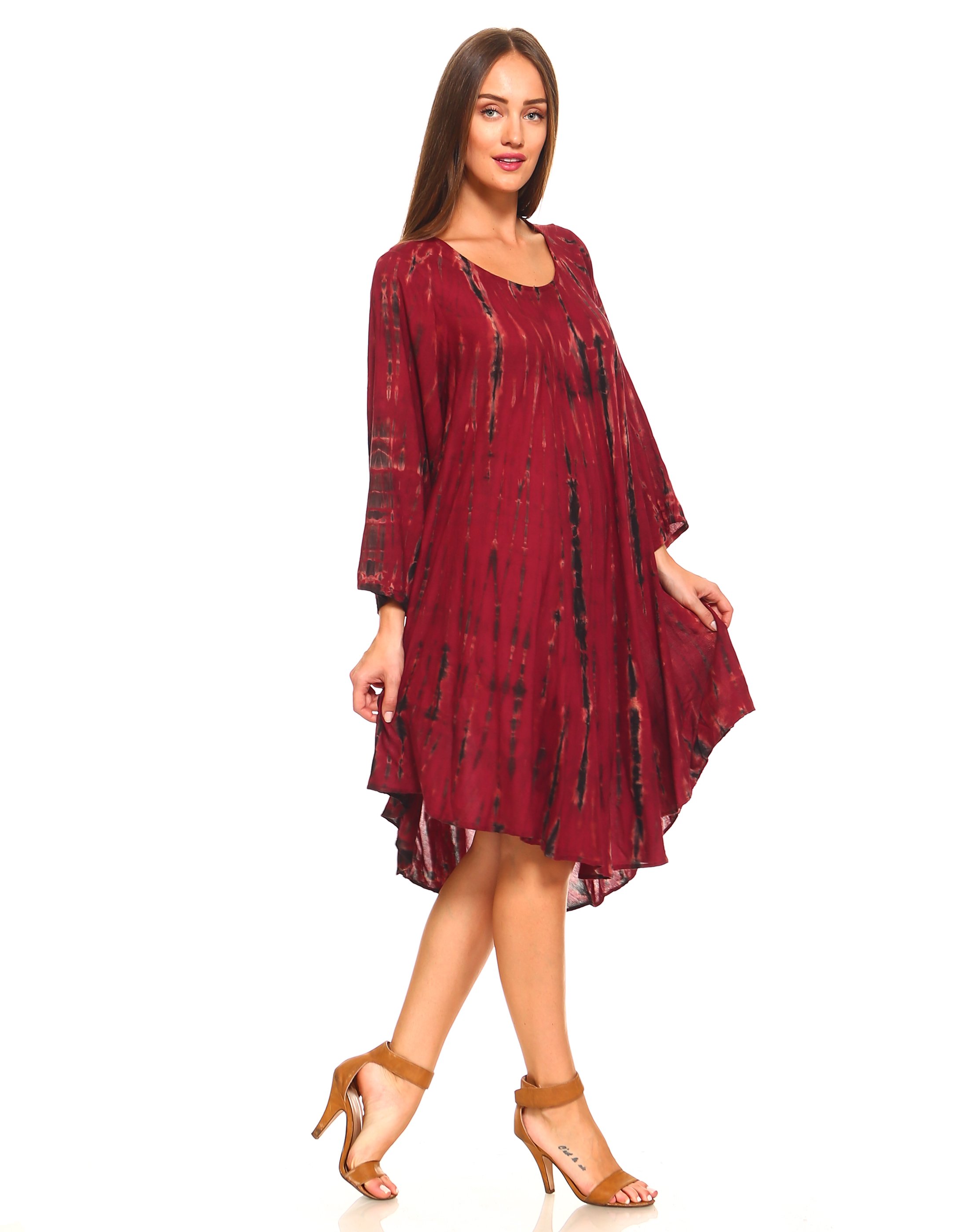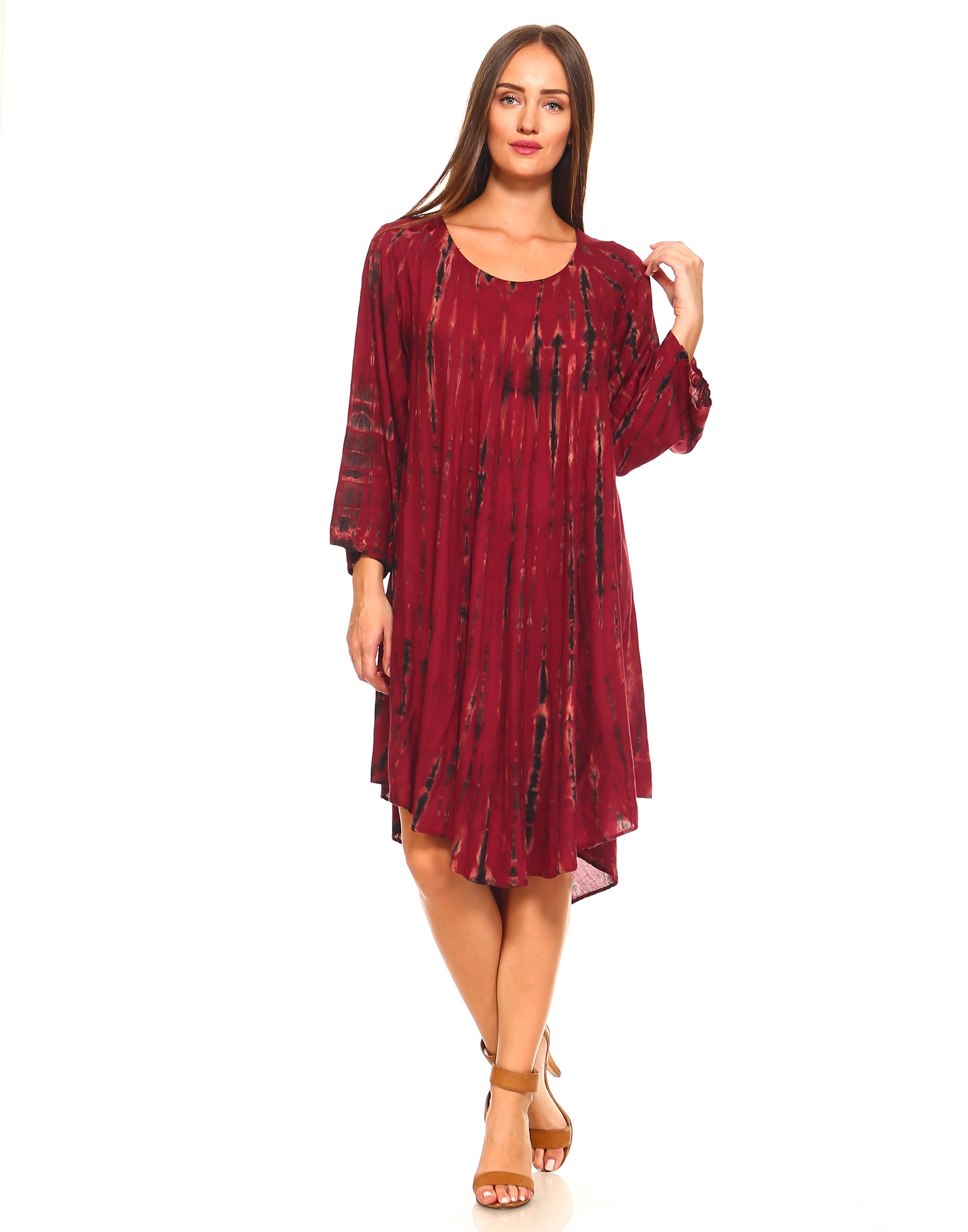 Hand tie-dyed with rich colors womens free flowing mid length umbrella dress