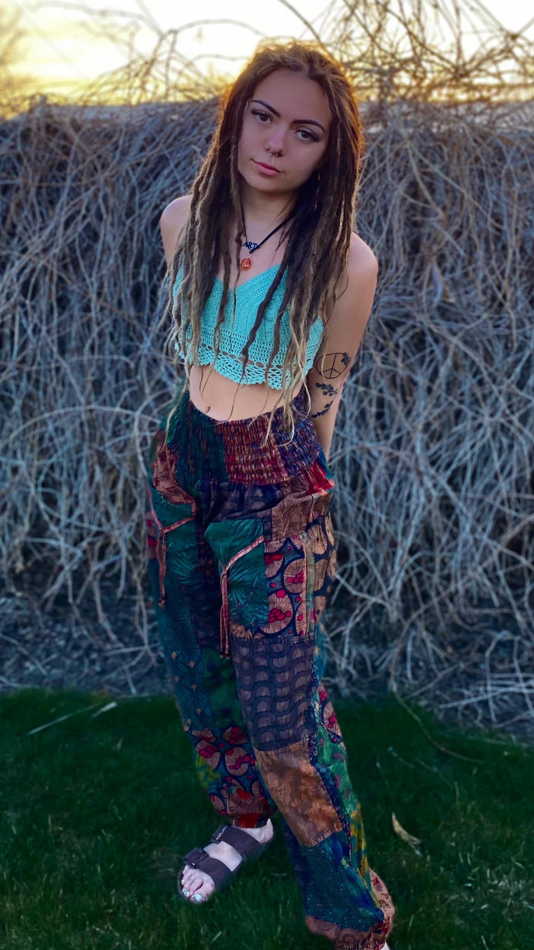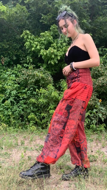A must-have for the fun summers, these grey cotton harem pants come in a very artistic pattern with an amalgamation of floral and geometric motifs. The material is perfect for the weather, and the smocked waist ensures additional comfort. There is an elastic style at the ankles of the pants, which gives a snug feel. The front of the pants has two large pockets, perfect for storing essentials such as a phone, wallet, keys, etc, additionally they are accessorized with beads to give a cool boho look. Pair these groovy pants with a plain grey top to bring out the patterned patchwork. Wear a side sling bag to have an artsy, boho-chic look. You can wear these loose pants to the beach, for yoga, or even for traveling!