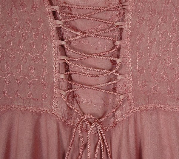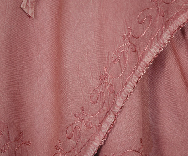 An asymmetrical handkerchief hemline dress crafted from free-flowing rayon fabric has a relaxed, flowy silhouette and a scooped neckline. The dress has an adjustable tie-up lace in the front and a partially smocked elastic at the back to adjust quickly to your body size. This sleeveless out-and-about dress fits right in with your warm-weather wardrobe, it is perfect going from day to night owing to its soothing mauve pink color. The pullover design features a stylish hemline. The dress has beautiful threadwork on it. The fabric of the dress flows with your body type and is very versatile.