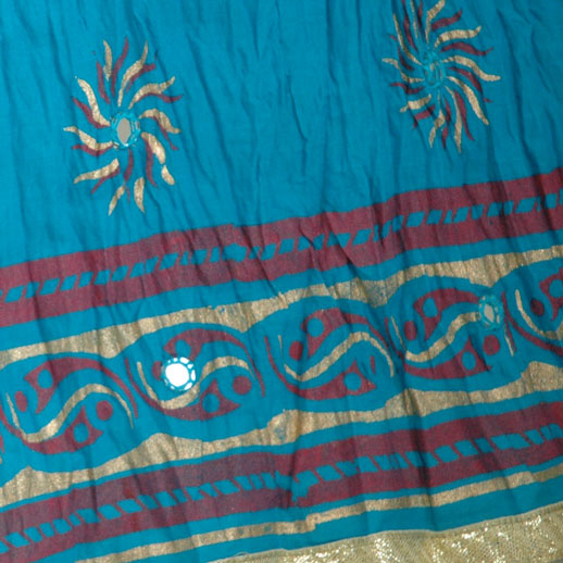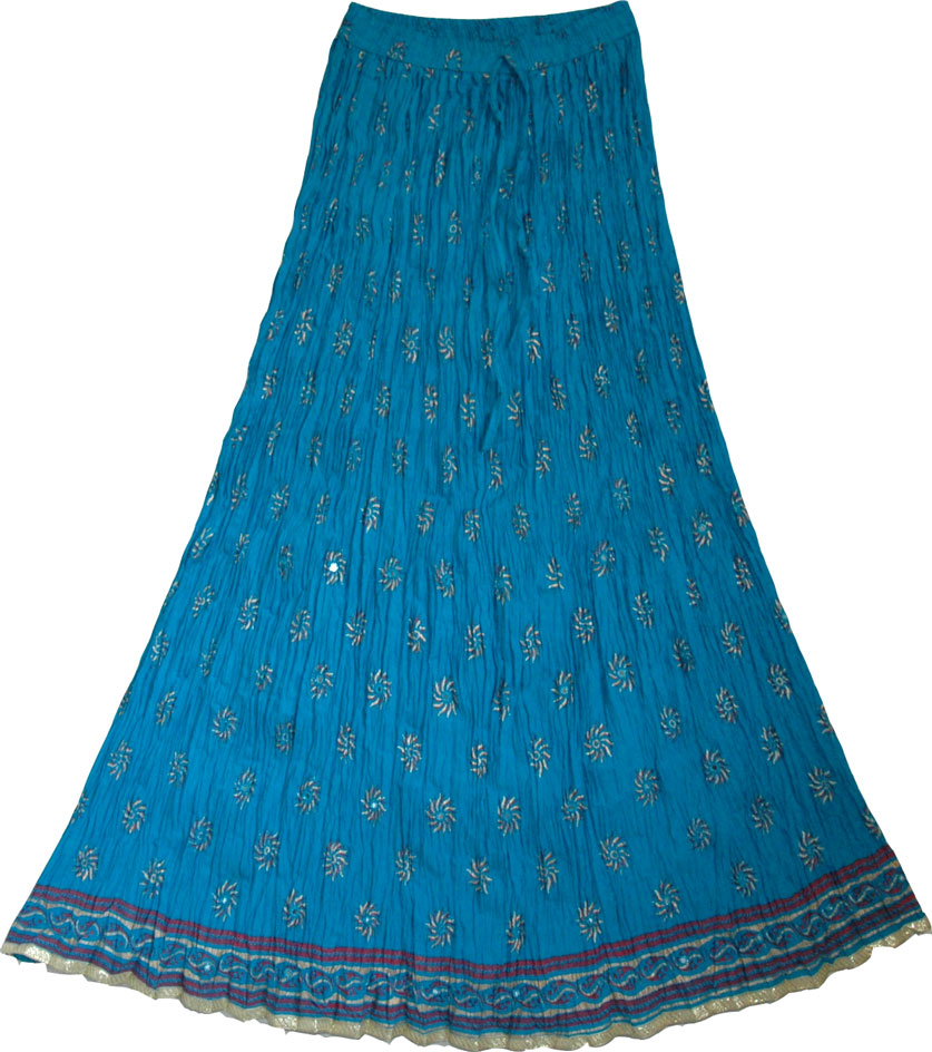 Artist Cotton Tiered Skirt with Blue and Brown Graphic