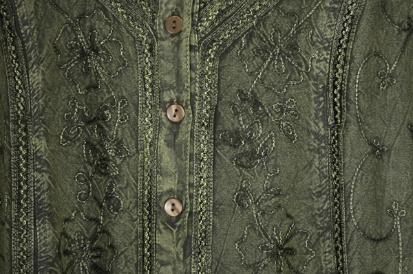 Medieval Dress with Floral embroidery vertical panels on the front, soft flare of the silhouette