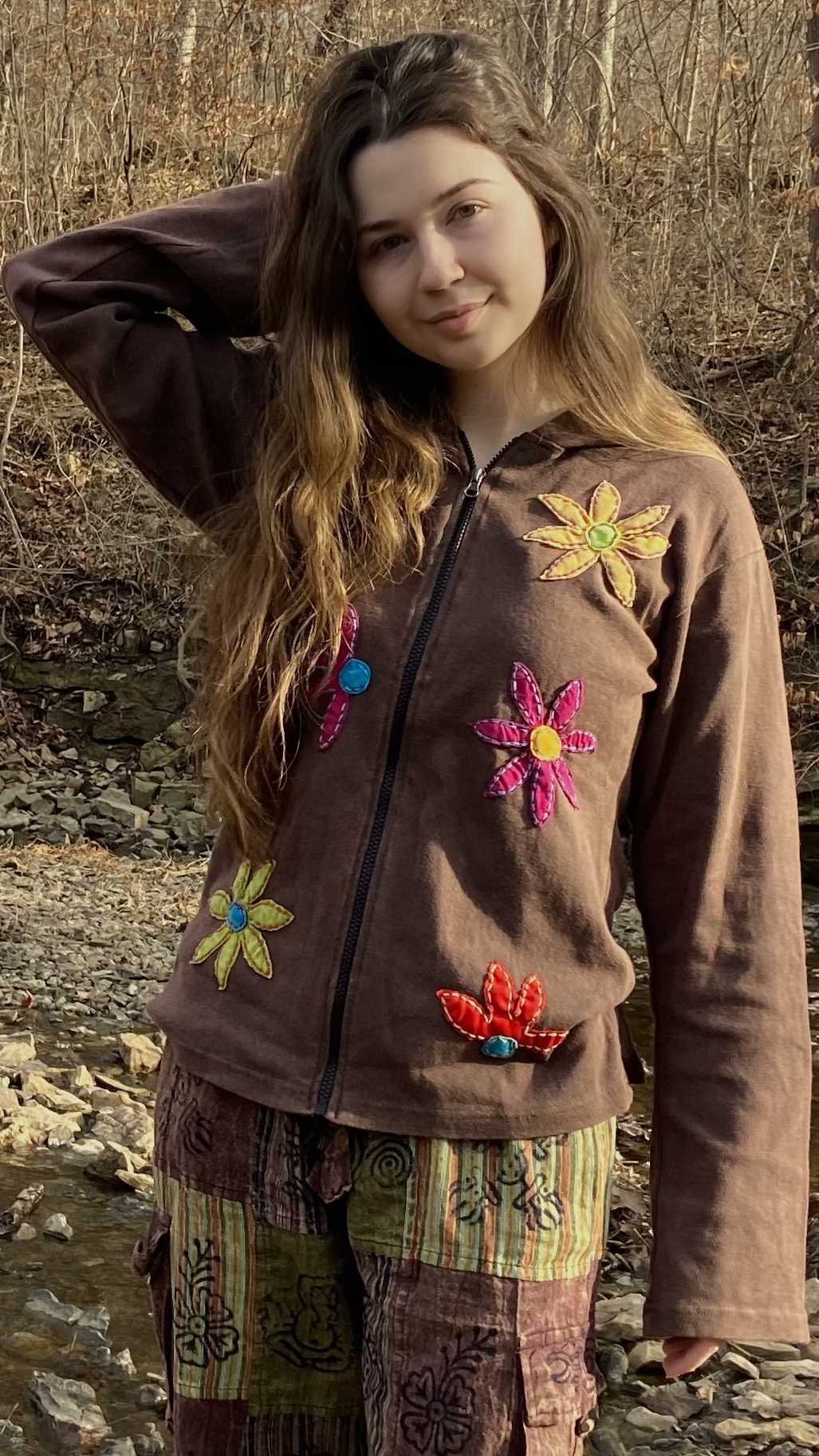 Handmade Fall Cotton Women`s Jacket Layer with Hoodie and Zipper