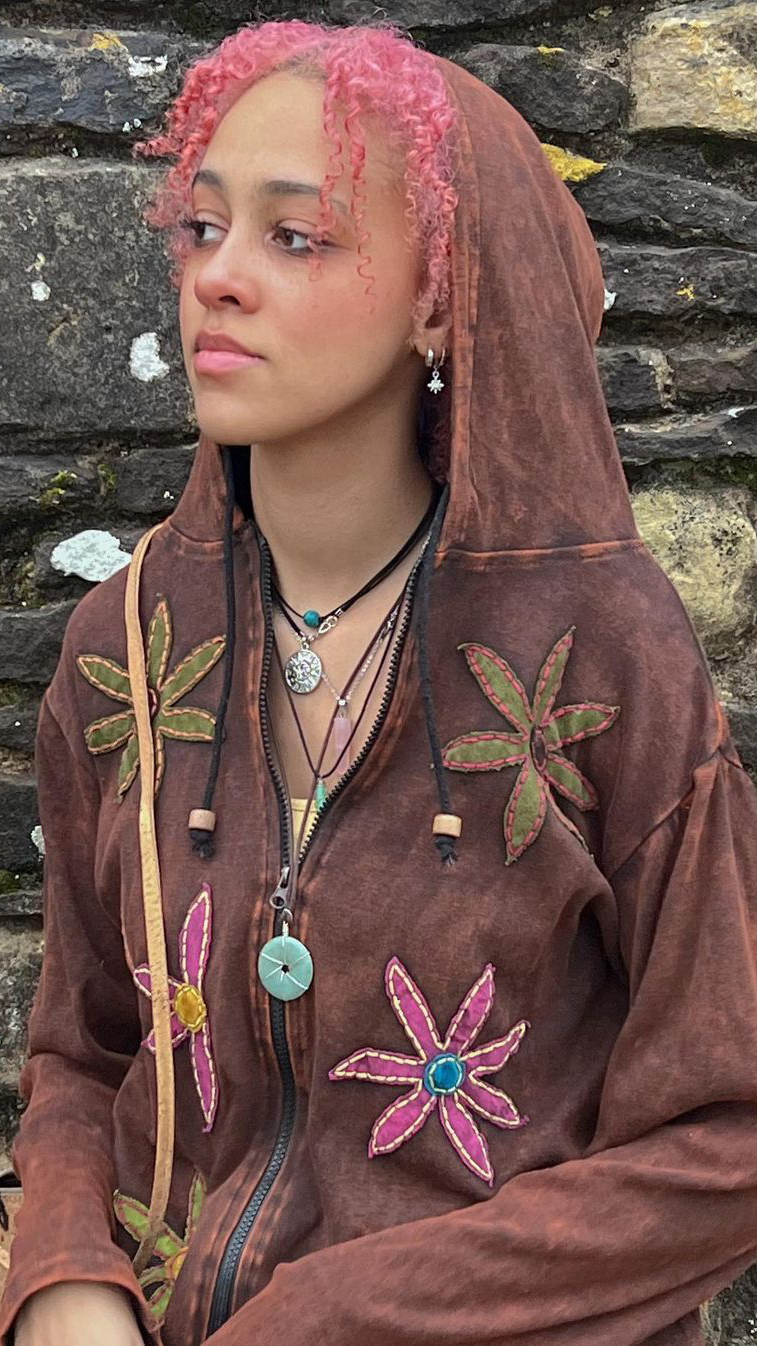 A bright and blunt red cotton hooded jacket with thick thread embroidery and flared bell sleeves and bottom. The main and attractive feature of this hoodie is its flared sleeve and bottom ends that look adorable and feminine. The thread embroidery covers the full front and compliments the bold color of the hoodie. This hooded cotton jacket comes with a front zipper so that you can easily put it on and off. The jacket is lightweight, stretchable and comfortable, and is perfect for slightly colder weather. You can pair it with light denim jeans for an urban bohemian look.