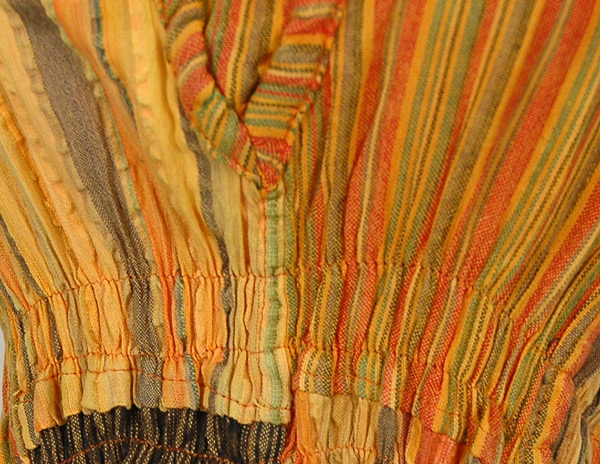Sunset-hued stripes add casual charm to this beautifully draped halter top/dress. It has ties at the back and two pockets with elastic on the front. It's long enough to be a short dress or as long as a long top. This halter cotton boho top has a hippie-chic feel that can be effortlessly dressed up with a jacket and heels. It features a delicate, feminine halter neck with a partially covered V-neck to showcase your shoulders and bust. This sleeveless top features a flattering empire waist and an elastic back bodice for an easy fit.