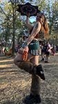 A handmade 12 inches short mini skirt in an earthy patchwork of green and brown with helio embroidery. The snap button wrap has a fanny pack on the waist - useful for carrying small items - from keys and cash to credit card. This skirt has belt waist that features snap closures for flexibility and adjustment.