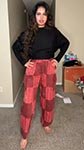 Step outdoors in style with these hippie unisex cotton patchwork pants. The harem-style pants have an elastic drawstring waist and two deep pockets on either side for comfort. The pants have a green and brown multicolor style patchwork and an interesting showcase of hippie stamps on top. The stamps have assorted symbols that look very unique. It is a good choice for hiking and outdoor activities. Pair these pants with a plain t-shirt or top to highlight its design.