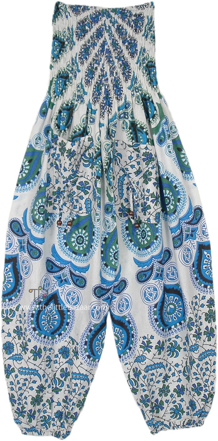 White toned stonewashed harem pants with all over paisley print