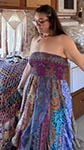 This bohemian skirt is made of several panels of soft fabric sewn together to create a wave-like pattern. The panels are then gathered and smocked at the waist, which creates a gathered, ruffled effect. The skirt is made of lightweight, flowing fabric and is typically worn in spring or summer. Recycled fabric prints make it a unique and sustainable clothing option. Each piece is unique and different in itself. ;